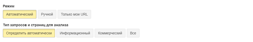 - Автоматический — укажите какой тип страниц анализировать, мы классифицируем страницы и выберем подходящие под критерии.