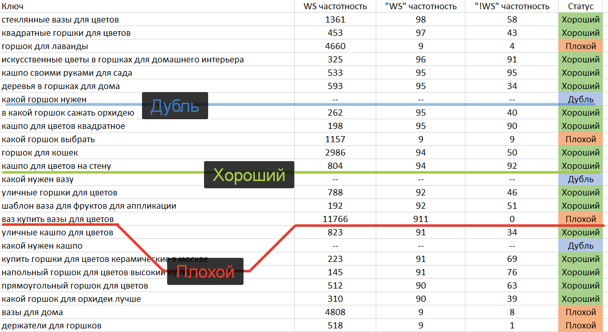 В процессе проверки мы соберем данные о частотностях WS / «WS» / «!WS», что будут доступны в отчетном файле.