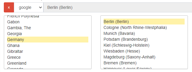 Все крупнейшие города мира и стран в поисковой системе Google на всех языках.